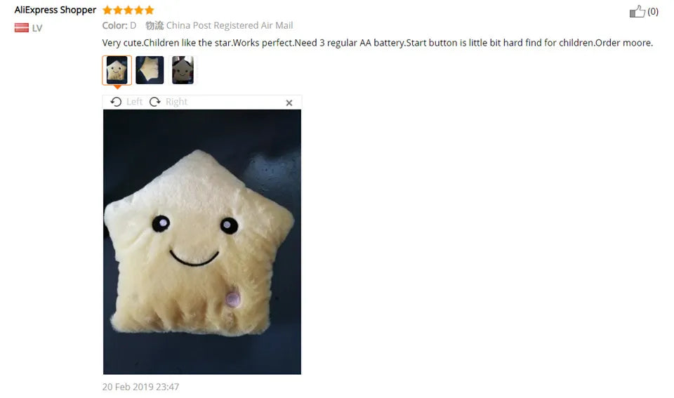 34CM Creative Toy Luminous Pillow Soft Stuffed Plush Glowing Colorful Stars Cushion Led Light Toys Gift For Kids Children Girls
