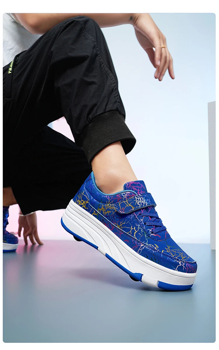 4 Wheel Dual-Use Roller Skates With Detachable Wheels,Sneakers, Boys And Girls Shoes With Wheels,Speed Skate