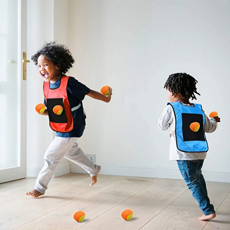 4pcs Children Dodgeball Game Vest Sticky Ball Dart Board Target Sport Game Toy Outdoor Parent-Child Interaction Playground Games