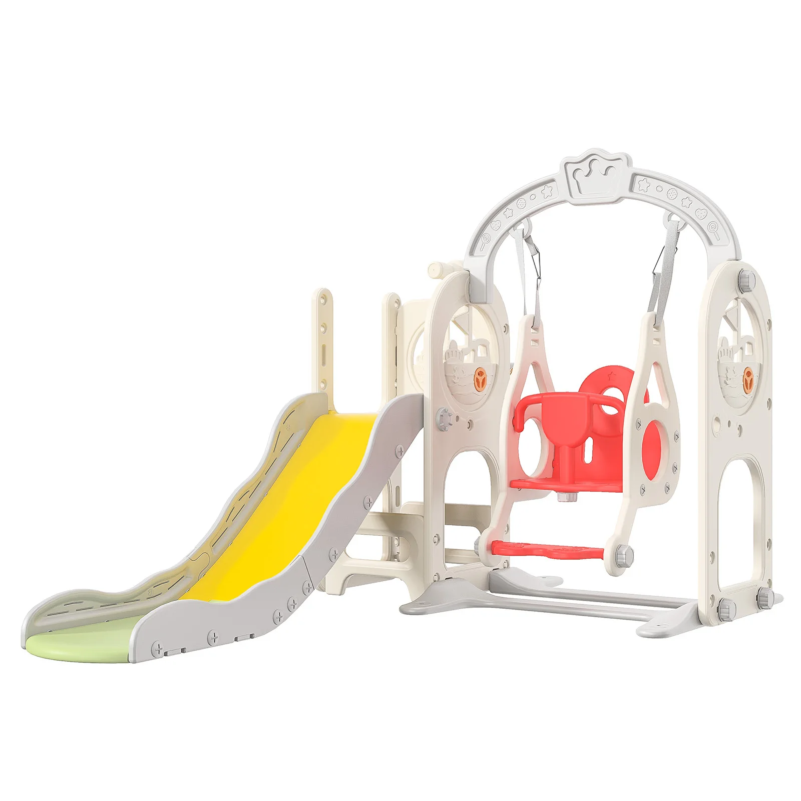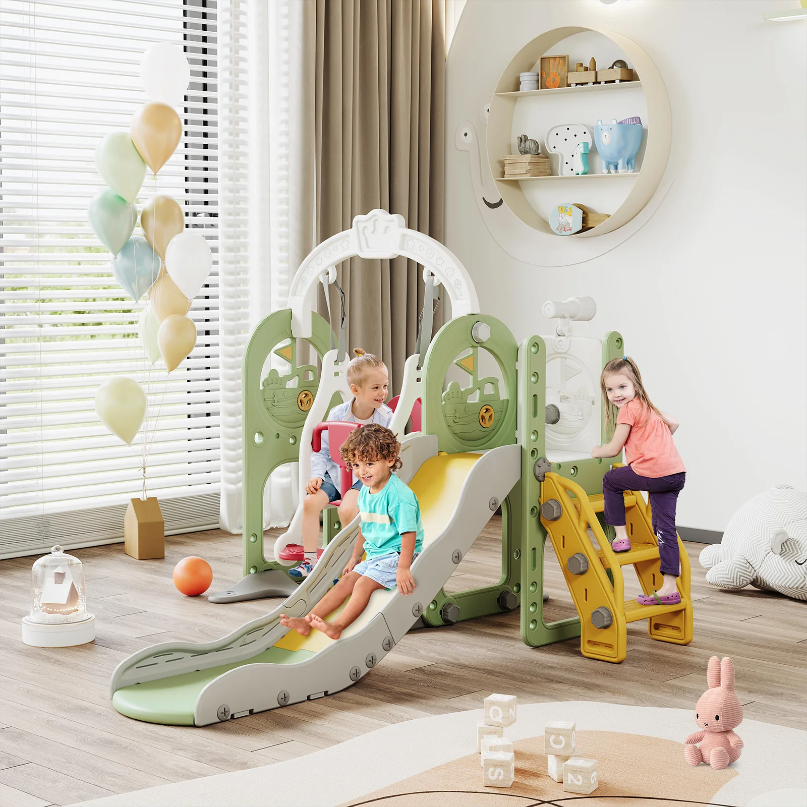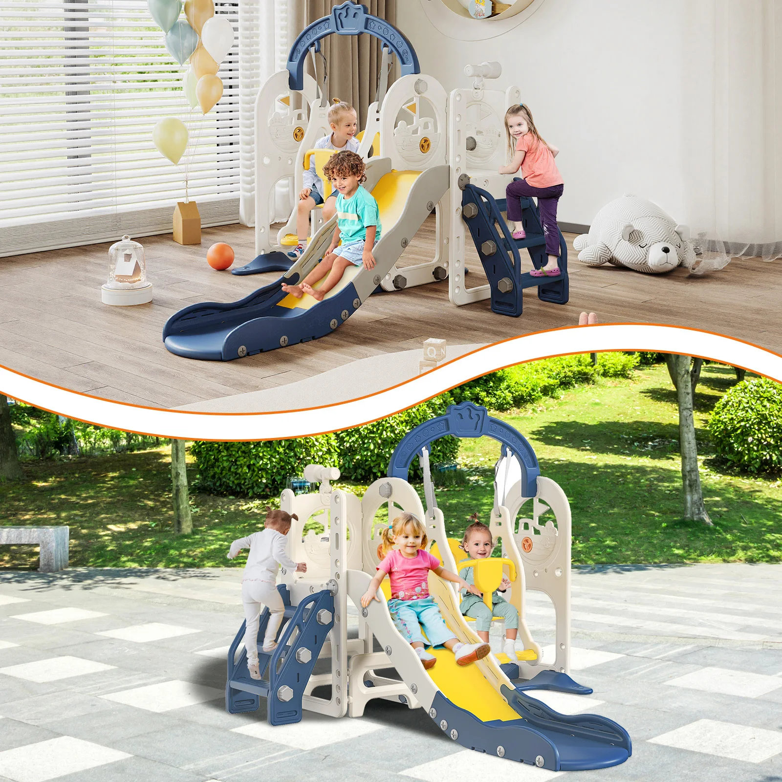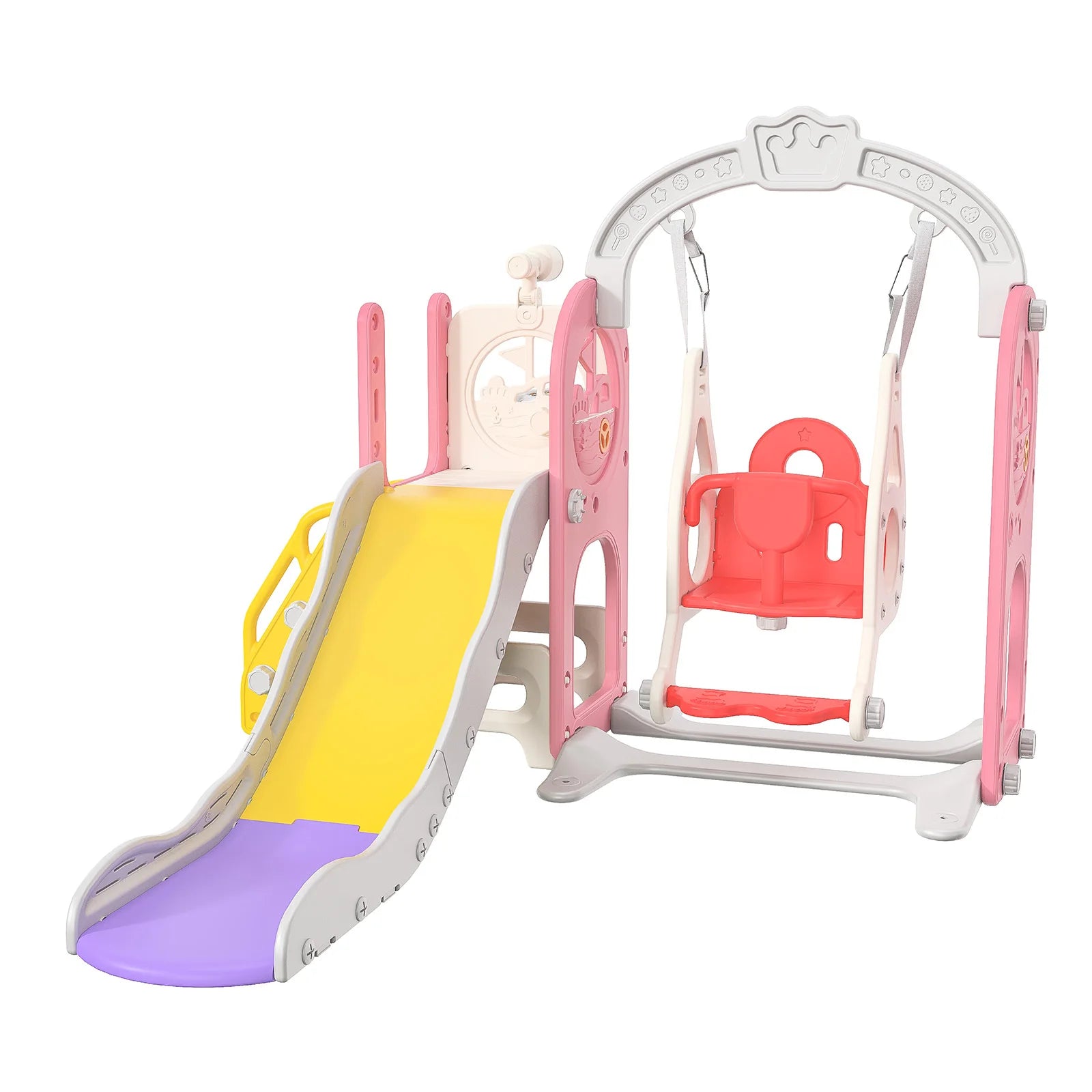 1.6 IN 1 PLAYGROUND: The Toddler Slide Combo offers a variety of play activities including slides, swings, climbers, basketball hoop, telescope and integrated storage. It stimulates both physical activity and creativity, ideal for keeping kids active and creative both indoors and outdoors.