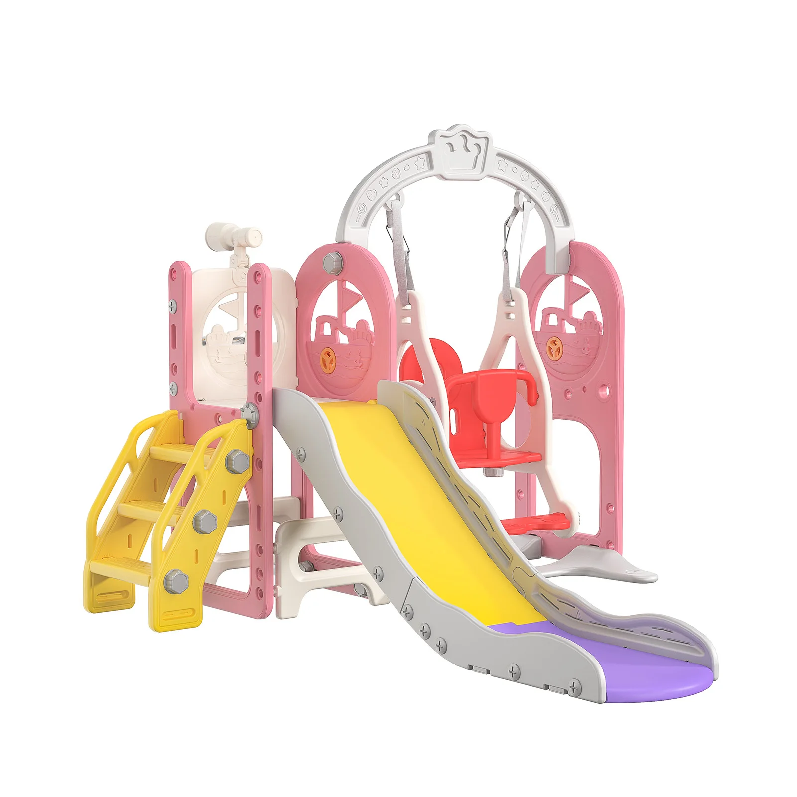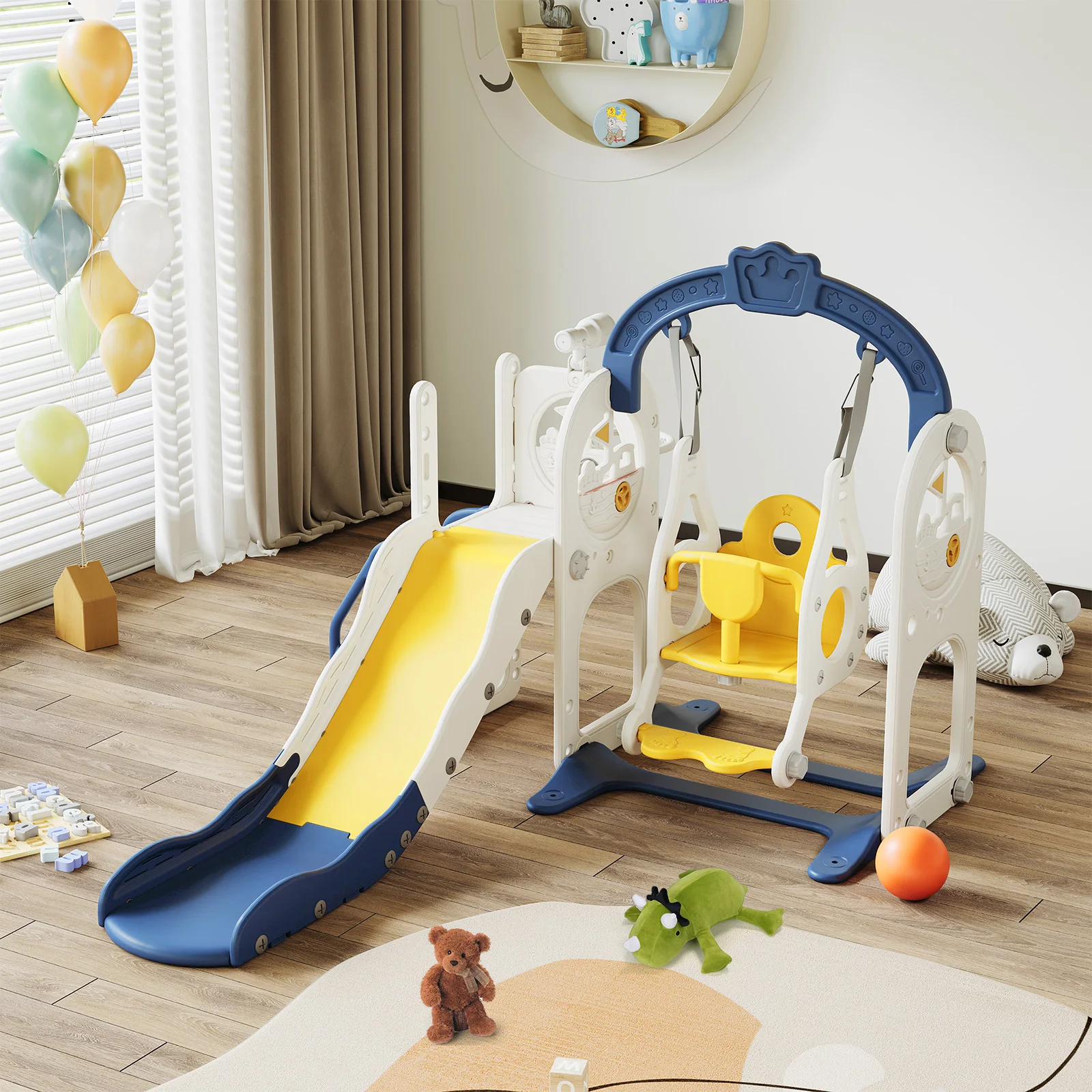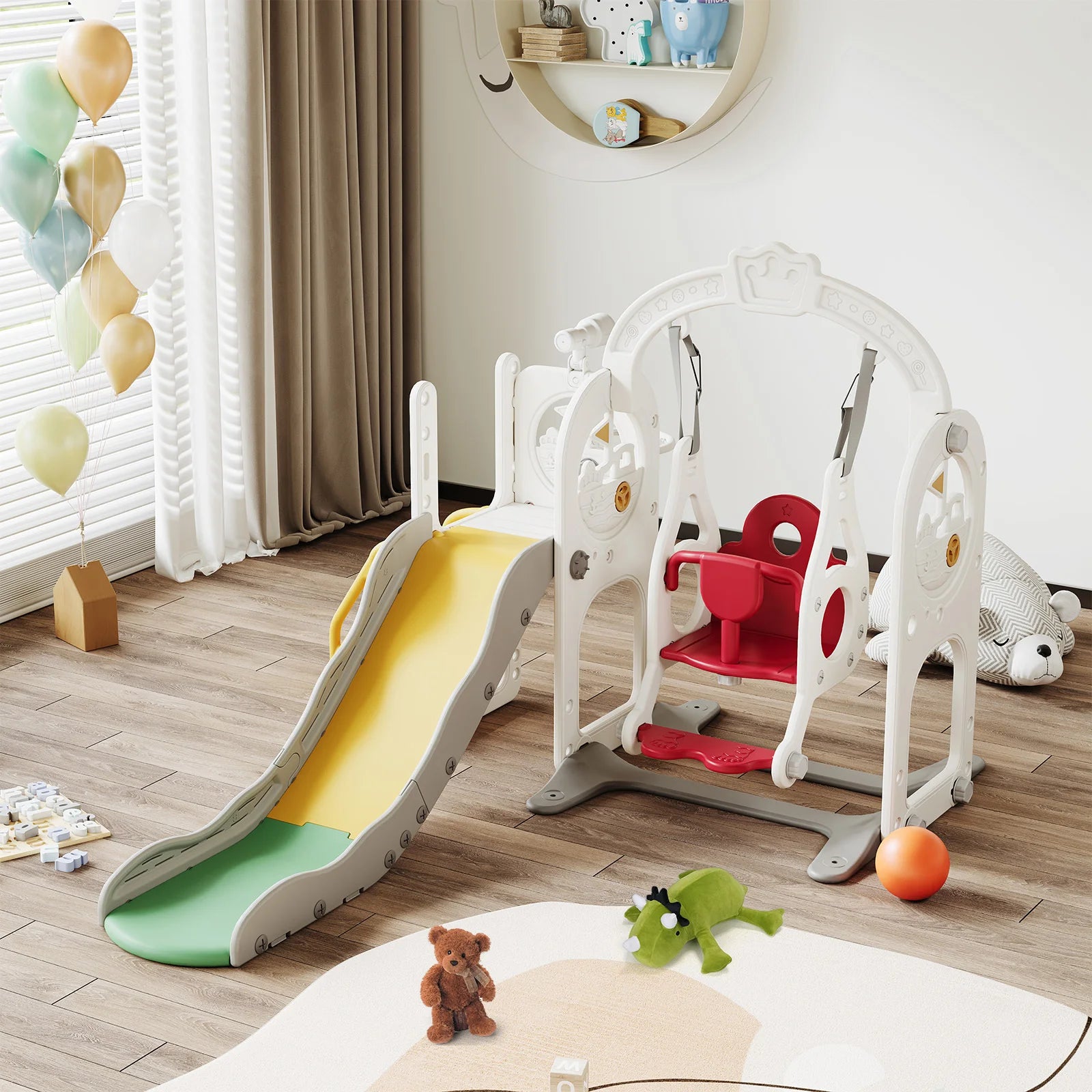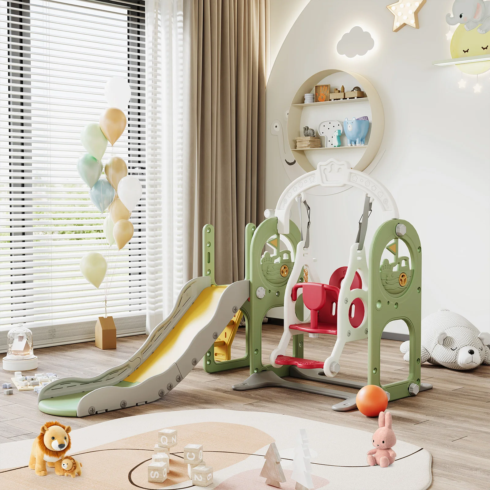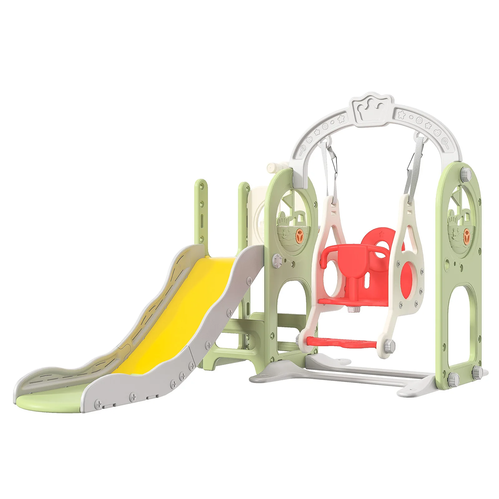 1.6 IN 1 PLAYGROUND: The Toddler Slide Combo offers a variety of play activities including slides, swings, climbers, basketball hoop, telescope and integrated storage. It stimulates both physical activity and creativity, ideal for keeping kids active and creative both indoors and outdoors.