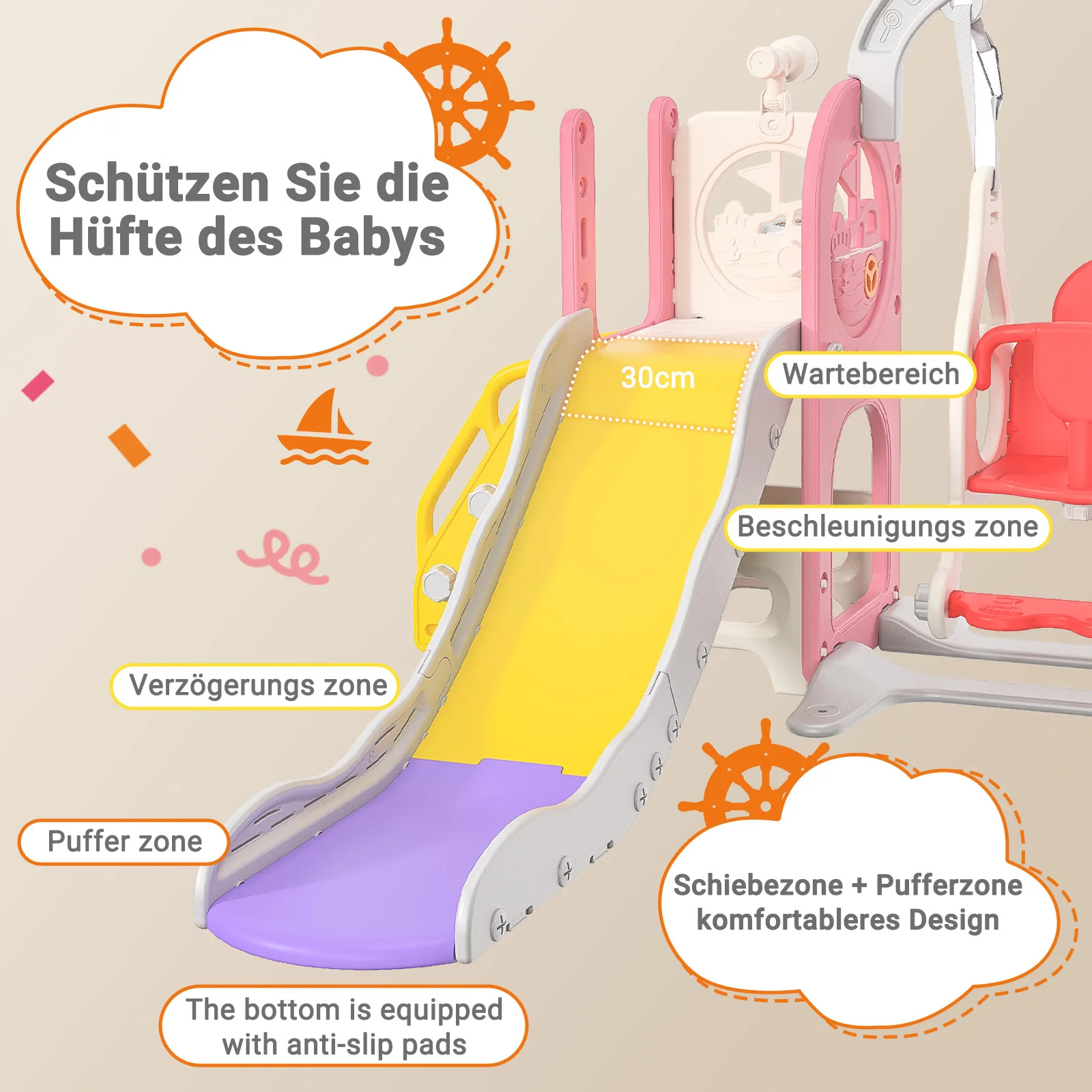 Anajqaqia 6 in 1 Children's Slide, Pirate Ship Slide, Children's Playground with Swing, Ball Frame and Binoculars