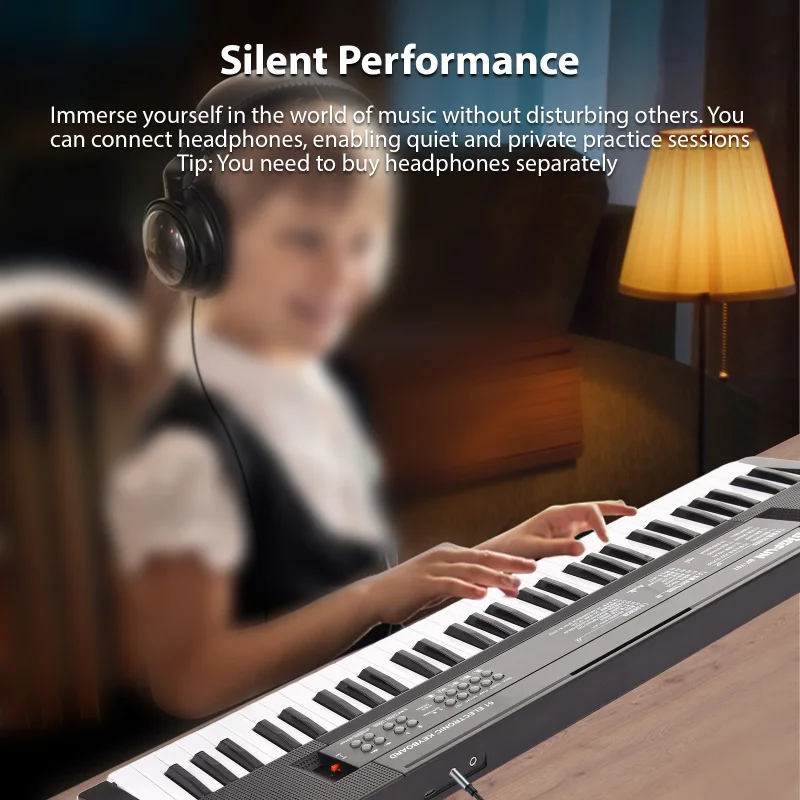 【Multiple Tones and Rhythms】: With 8 tones, 5 rhythms, 5 drums percussions, and 6 demos, this electronic piano offers a wide range of sounds and rhythms to explore. It also features a headphone jack for private practice. Whether you're a beginner or a seasoned player, you'll find endless possibilities for musical expression.