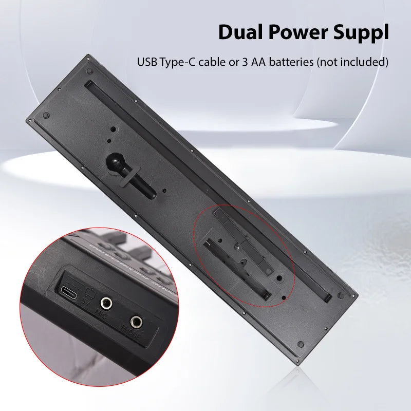 【Dual Power Supply】: Our electronic piano can be powered by a USB Type-C cable or 3 AA batteries (not included), providing you with more flexibility and convenience. Whether you're at home or on the road, you can play your music anytime, anywhere.