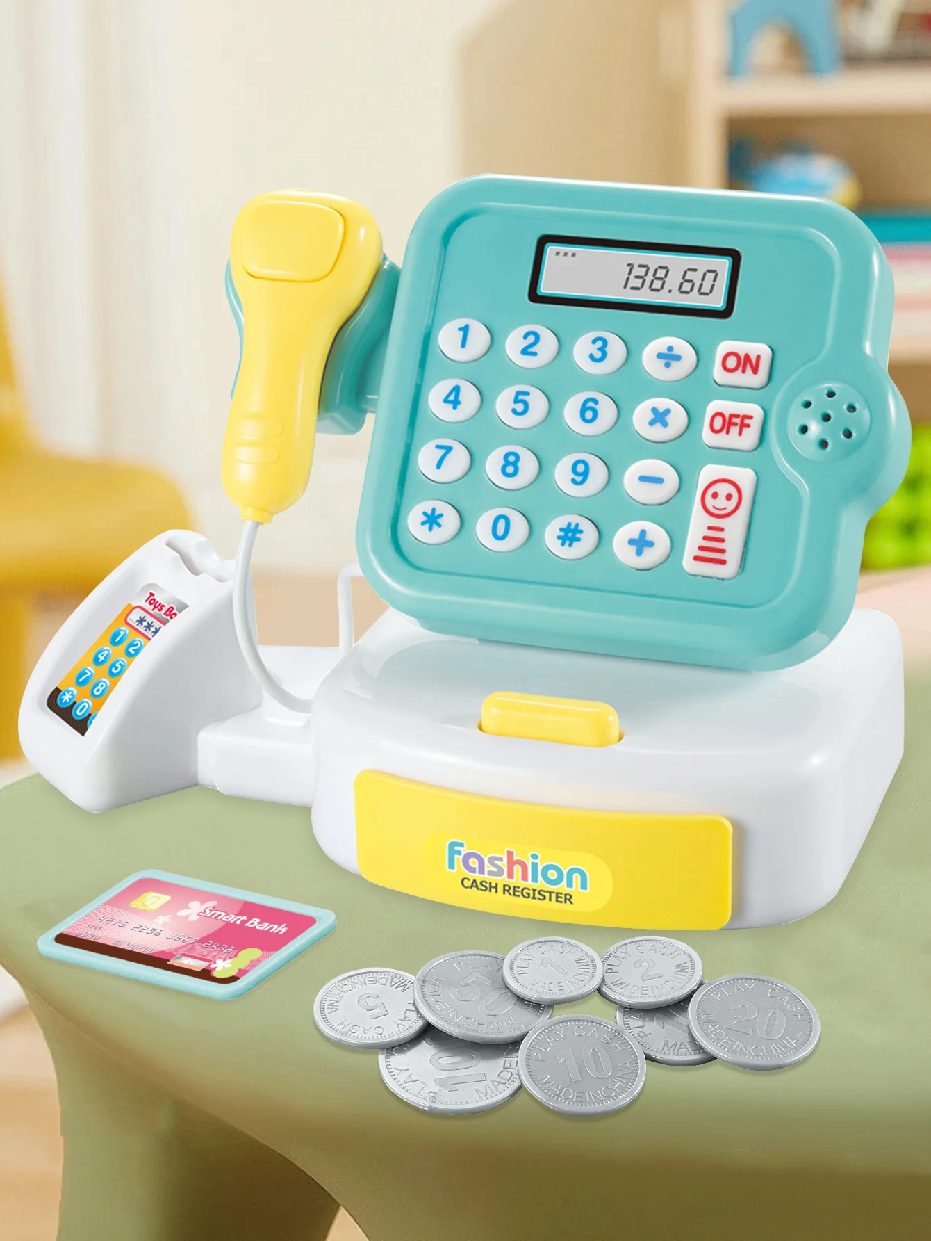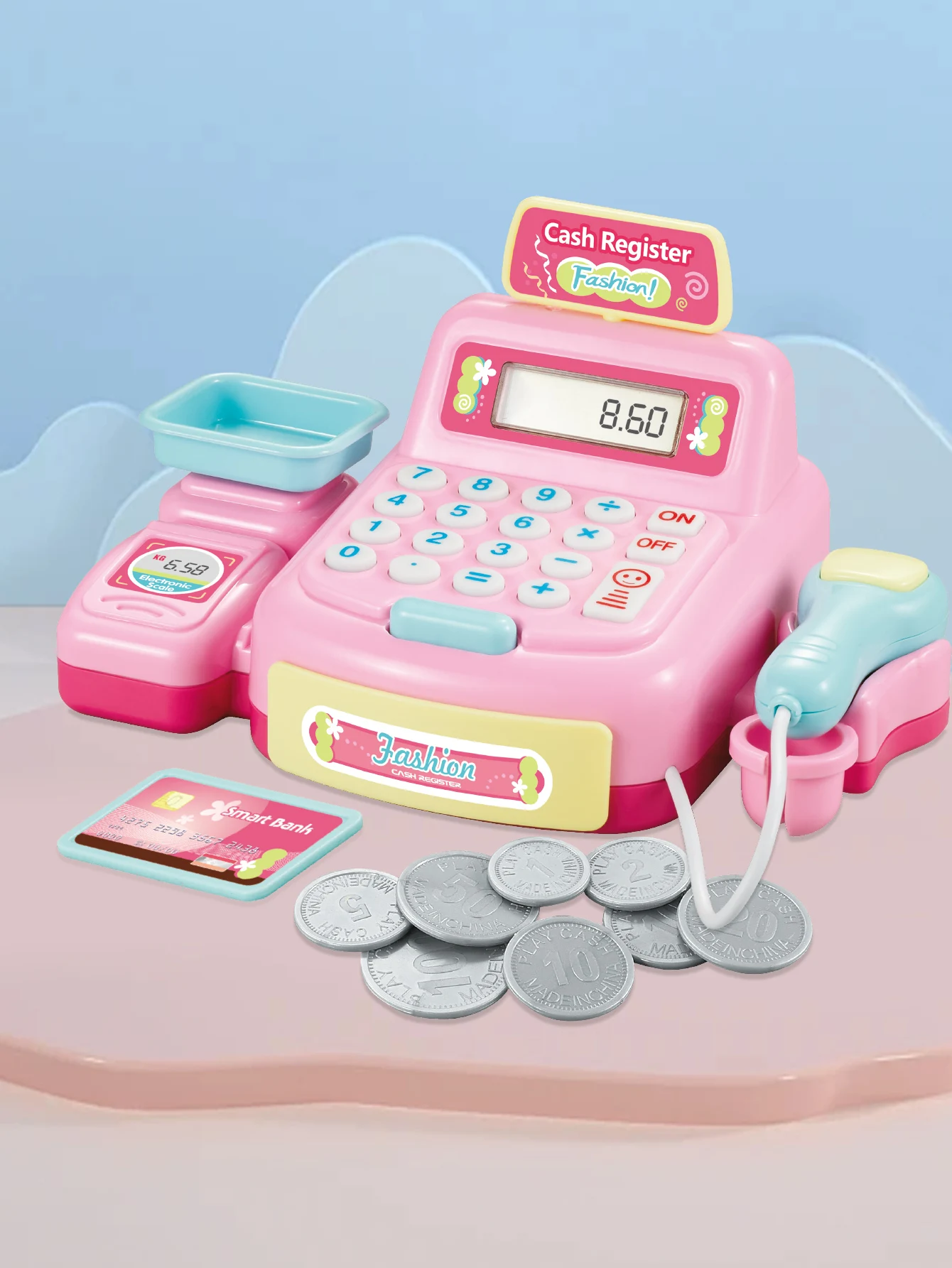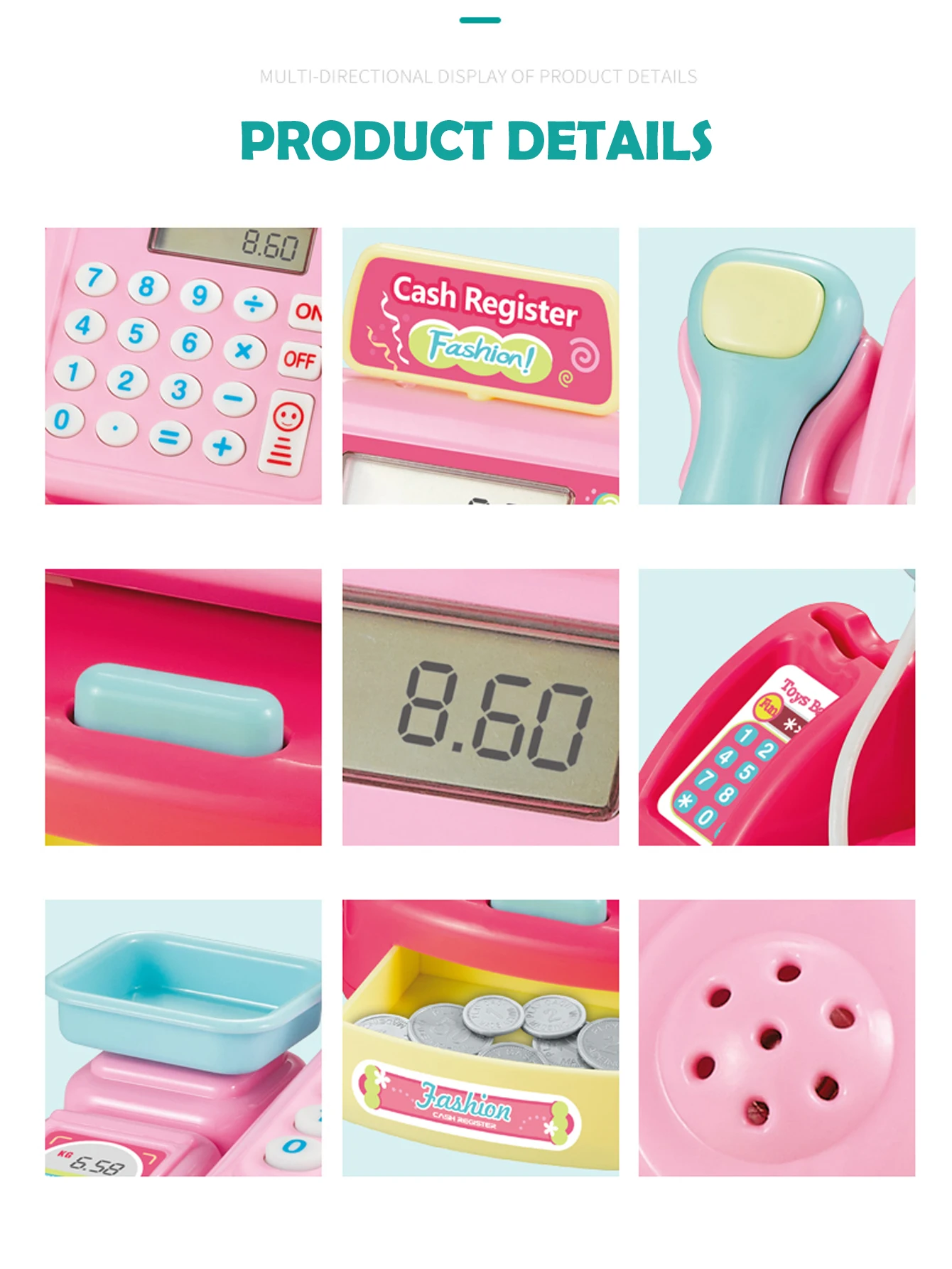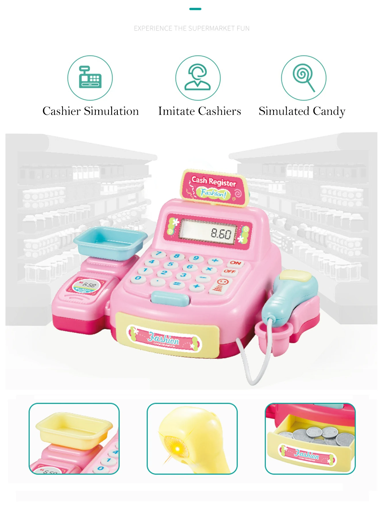 Cash Register Educational Toys, Pretend Calculator Cash Register Toy With Sound And Light, Supermarket Scanner Gift for 3+ Girls
