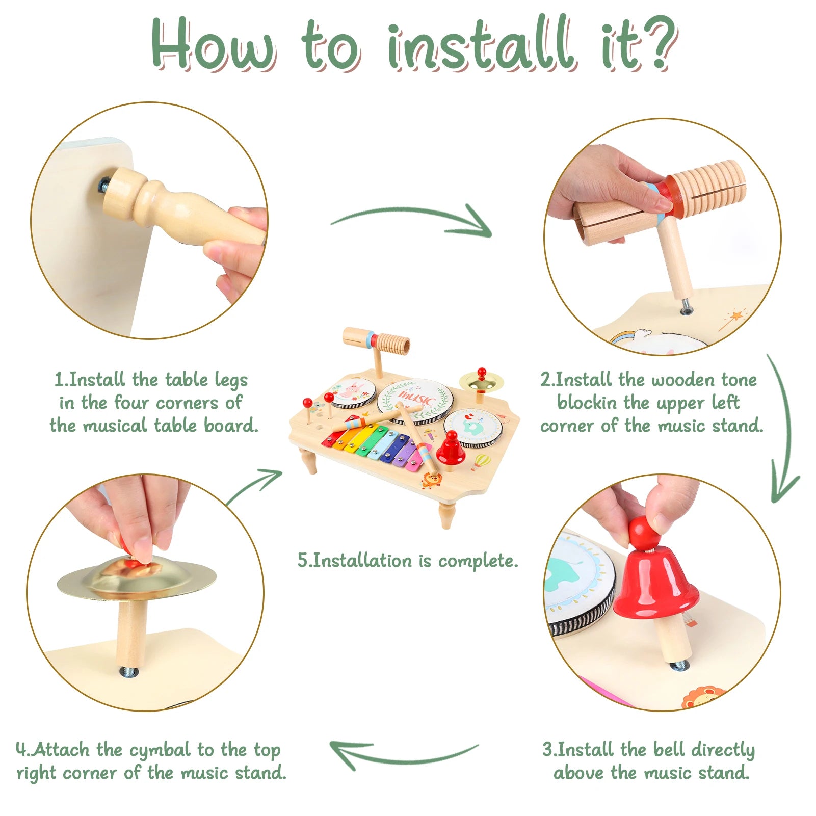 【Drum Set for Children】These musical instruments for children encourage your child's interest in music. Several instruments can play different melodies. Some of these melodies are as gentle as a breeze, others as majestic as a valley, and still others as lively as a bird.