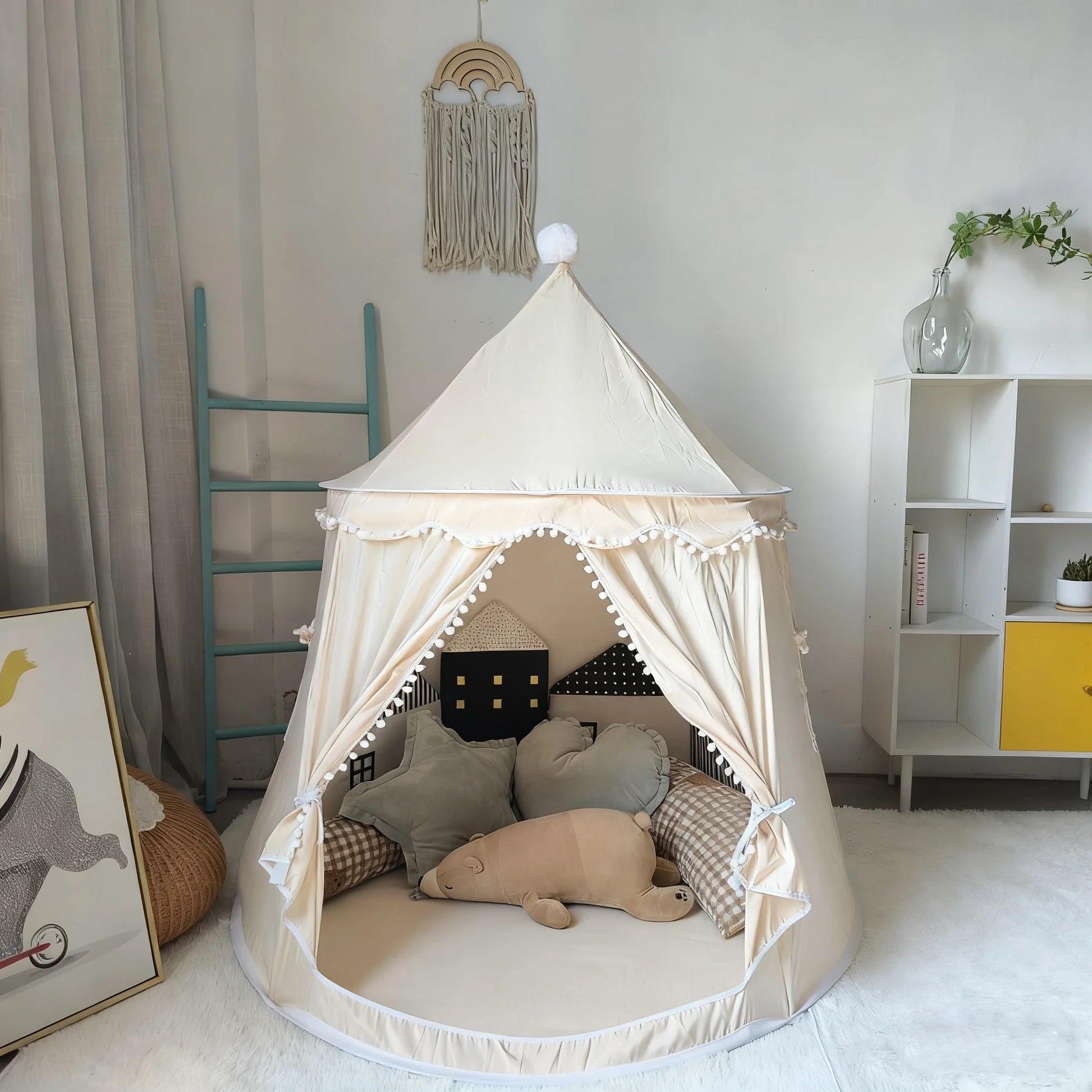 【THICKENED & SKIN-FRIENDLY COTTON MATERIAL】Making the kids tents indoor playhouses sturdy & soft to touch, moisture-proof, easy-to-clean, anti-static electricity & breathable, meanwhile, thanks to the PVC vaulting poles, it's borned to be durable & tough, which means your children can enjoy it for years to come;