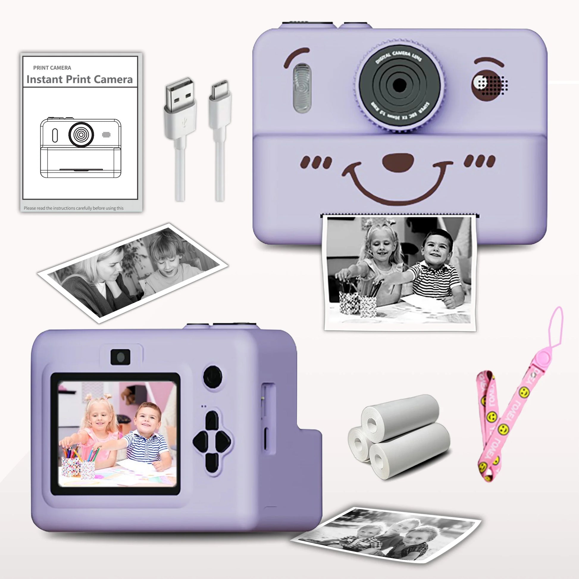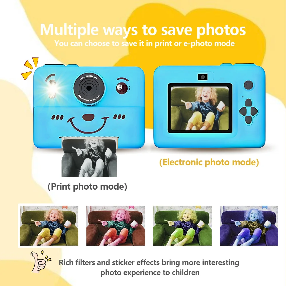 kids Instant print camera,photo&video&music&puzzle games,flash|dual camera|USB charging,birthday&holiday&family gathering gifts
