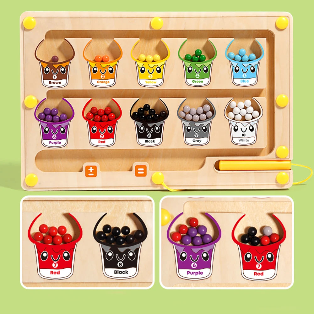 【Wooden Color & Number Magnetic Maze】This wooden magnetic maze is suitable for toddler aged 3-5 years old. It is a colorful color and number matching maze game with a magnetic pen and 10 colors of magnetic beads. The magnetic beads in the maze are distinctly different in color, ensuring your child can effortlessly sort and match by color and number.