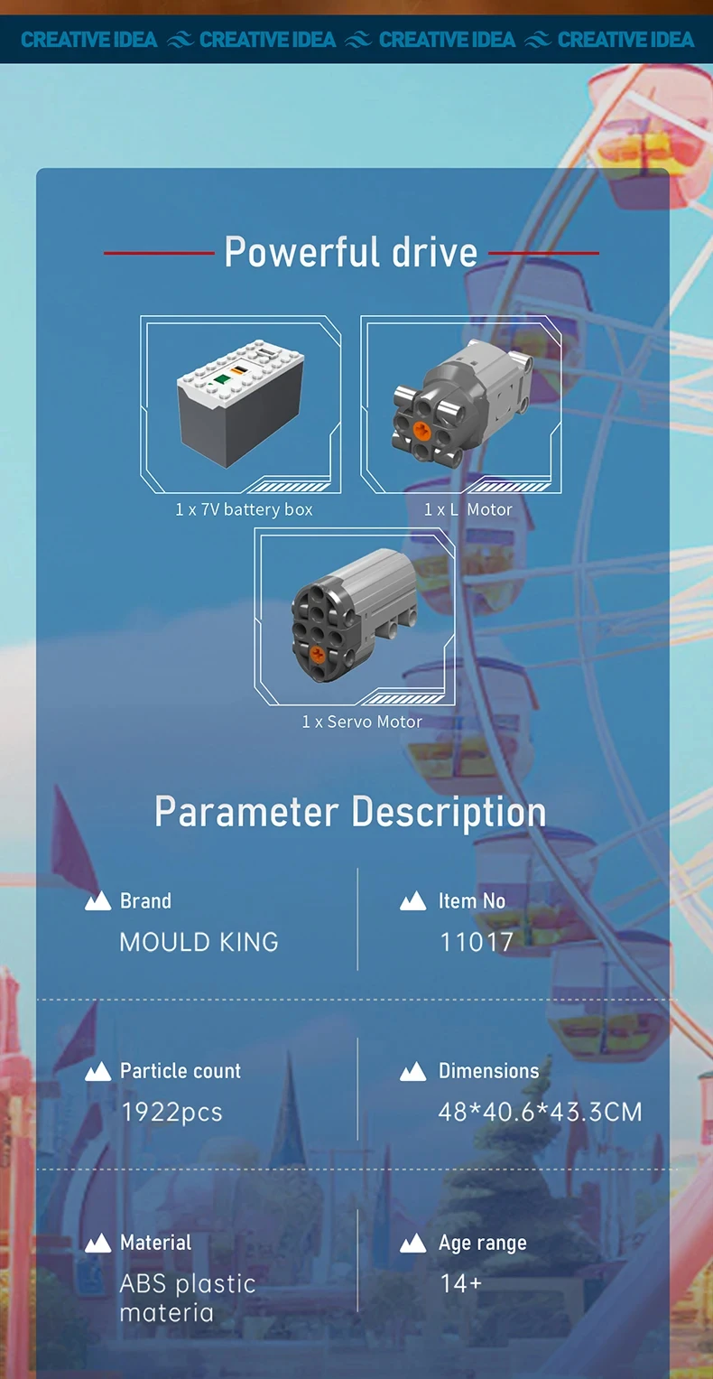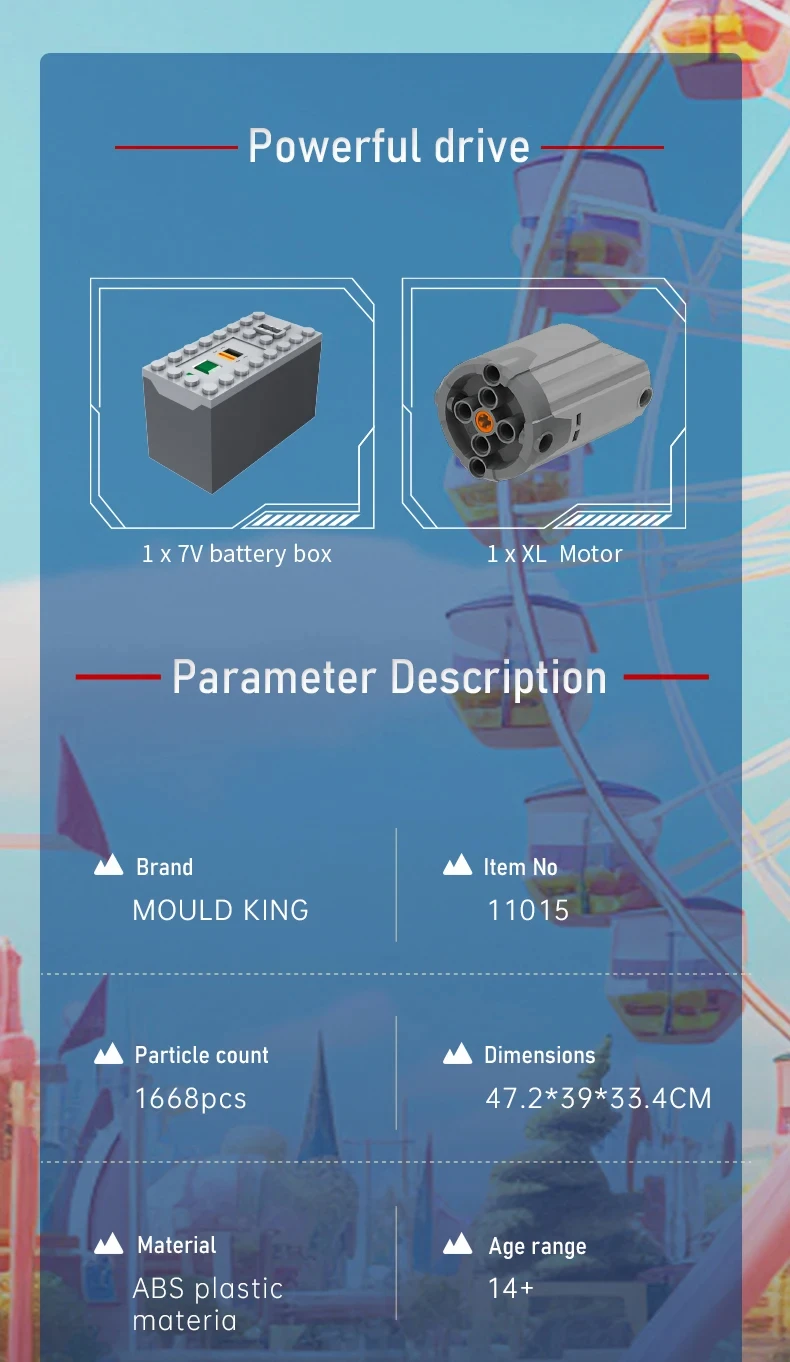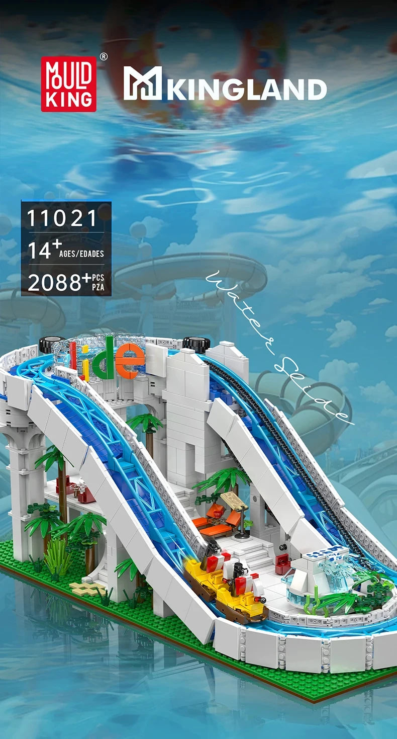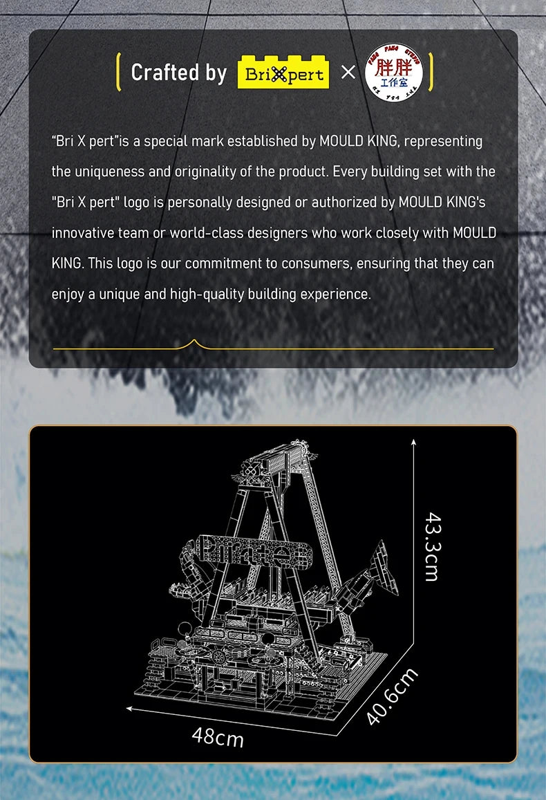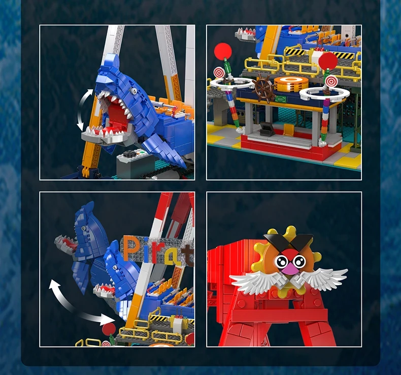 MOULD KING Amusement Park Toys Motorized Spinning Ride,Water Slide,Flying Swing Ride,Shark Pirate Ship Building Blocks Bricks