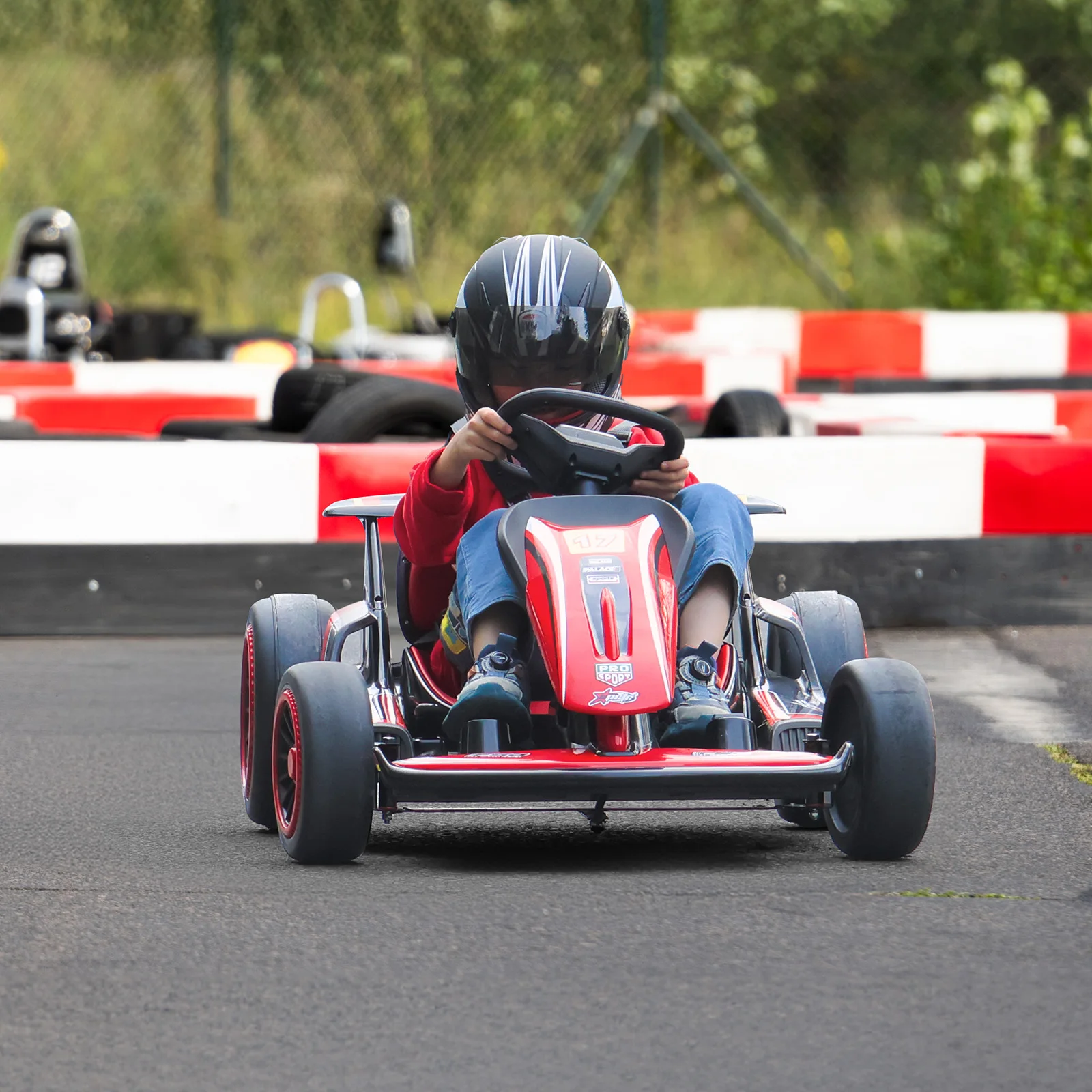 Backrest & Safety Features: Equipped with a secure five-point safety belt and a supportive backrest, this electric go-kart for kids provides peace of mind. Soft-starting technology helps it start and stop safely, preventing your child from being startled by sudden movements.
